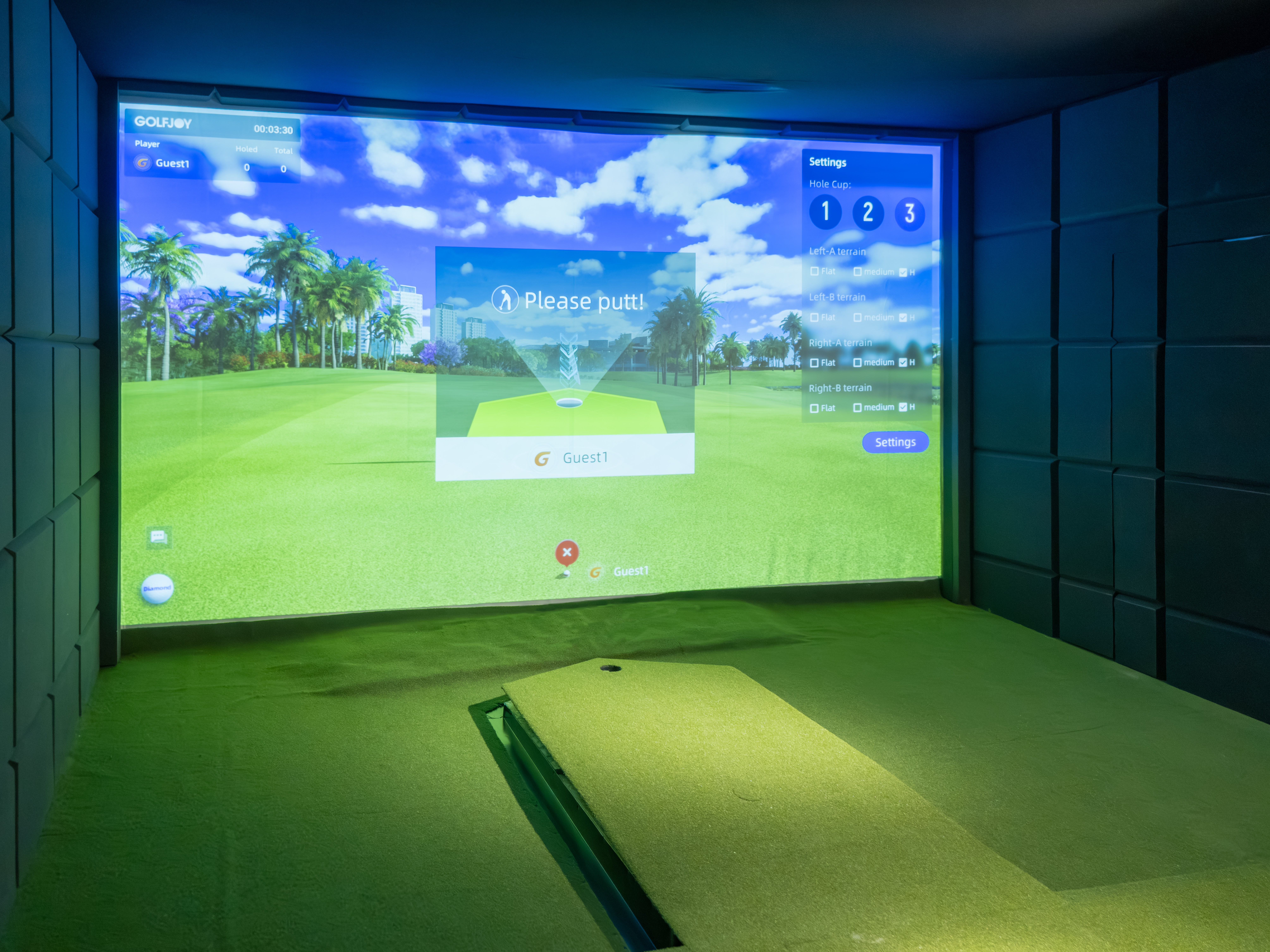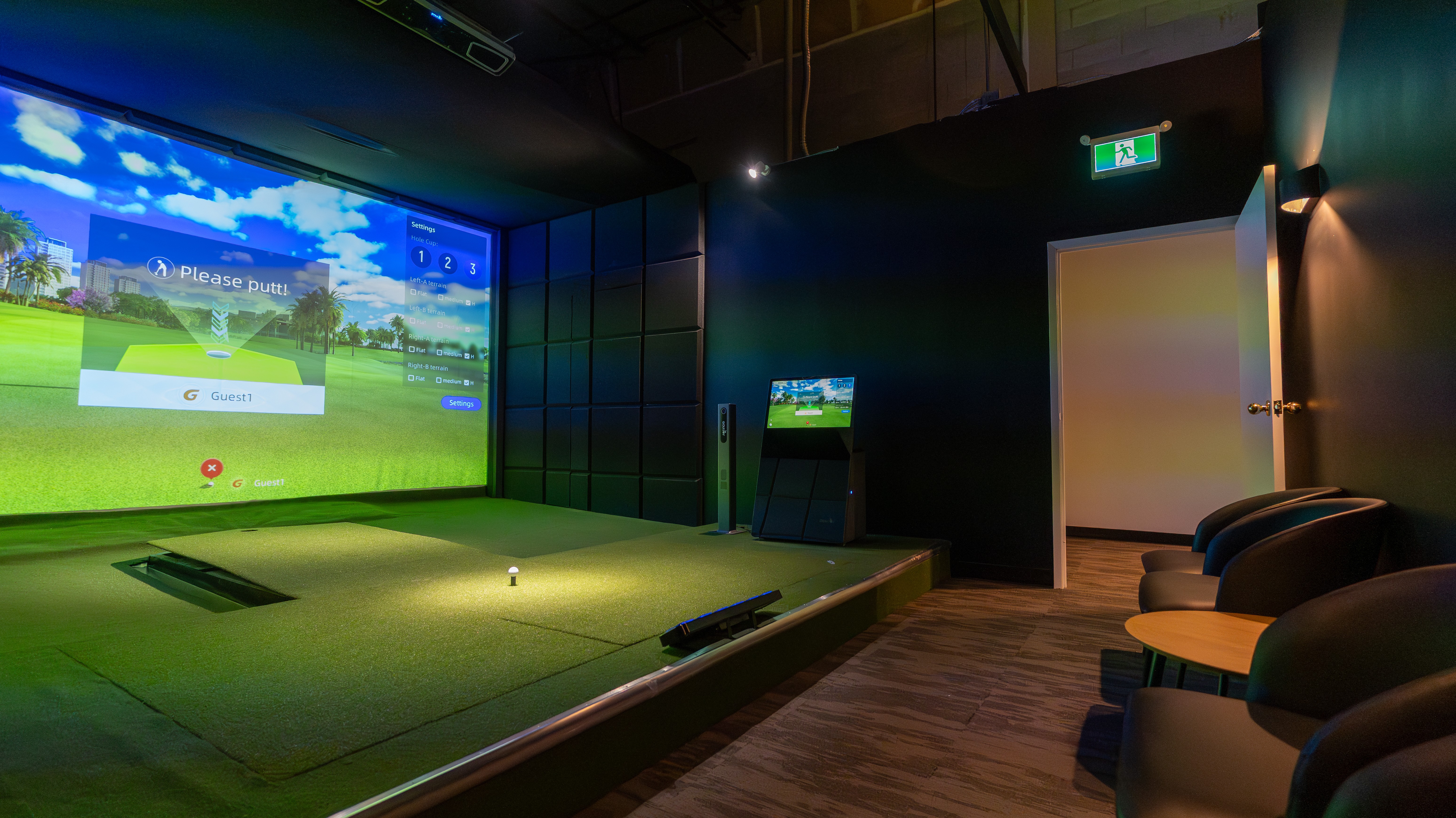 Including auto tee, 3D putting, touch screen controls, and replay cameras. The future of indoor golf lies here